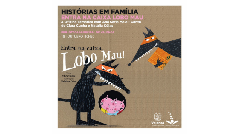 A Biblioteca Municipal de Valença recebe "Entra na Caixa Lobo Mau", na próxima edição de Histórias em Família, este sábado, 18 de outubro, às 10h30.