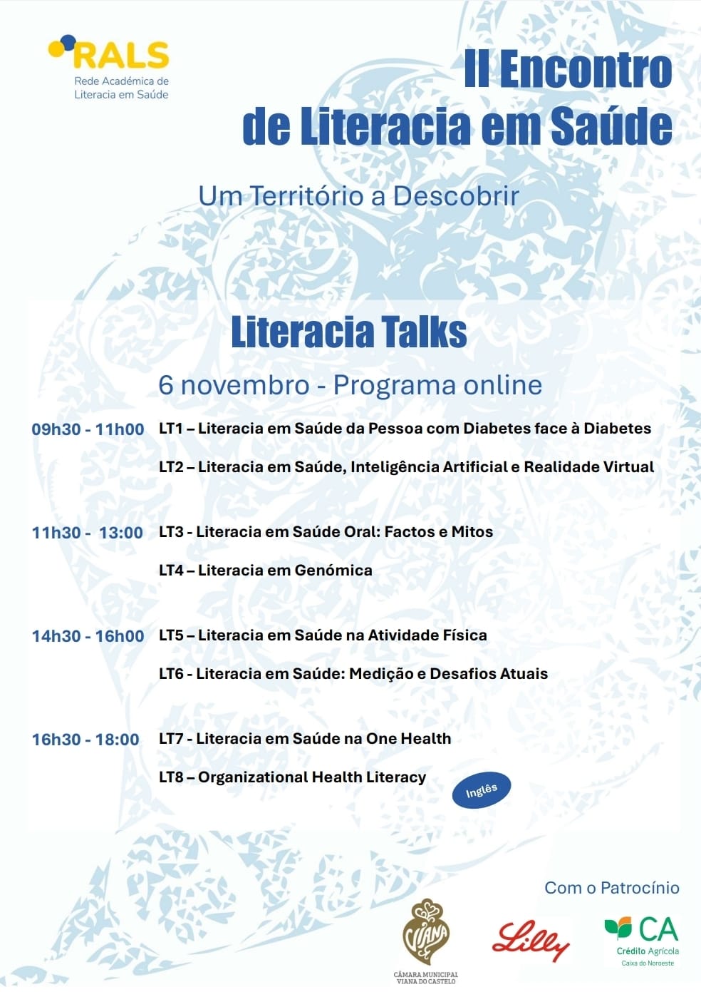 O primeiro dia será dedicado às Literacia Talks, em formato online, com oito sessões que exploram temas emergentes como a inteligência artificial, a genómica, a saúde oral, a atividade física e a abordagem One Health. No segundo dia, o encontro decorre em formato presencial na Escola Superior de Saúde do Politécnico de Viana do Castelo (ESS-IPVC), instituição que integra ativamente a Rede Académica de Literacia em Saúde (RALS).