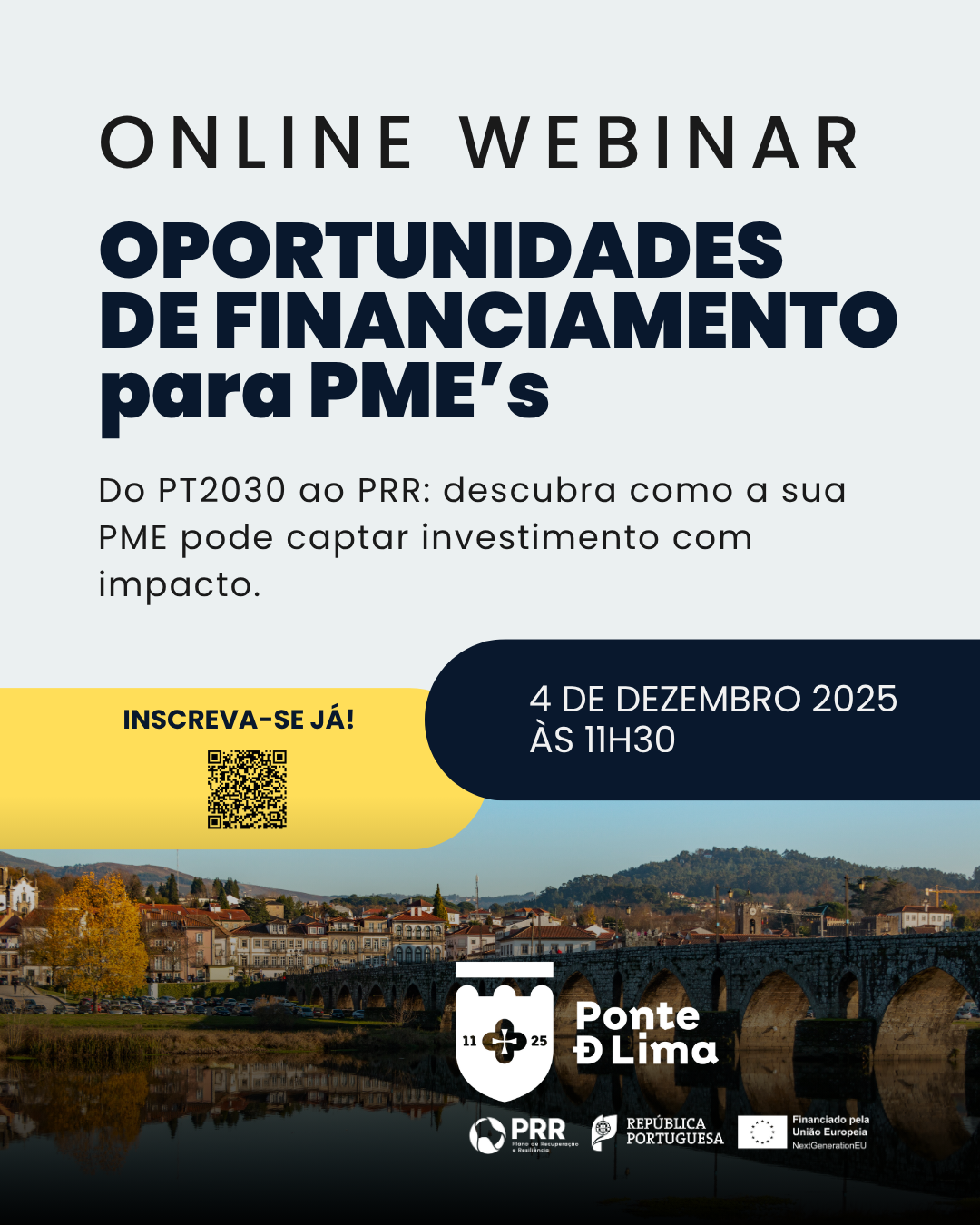 Com este ciclo de webinars, o Município de Ponte de Lima reafirma o seu compromisso em impulsionar o
