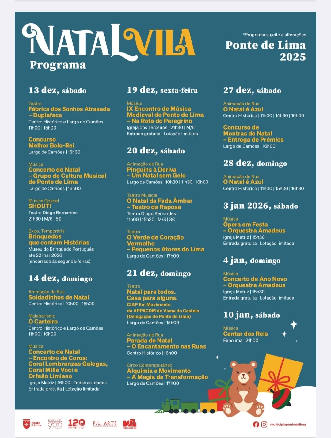 Durante todo o mês, a NaTal Vila de Ponte de Lima oferece uma programação contínua, pensada