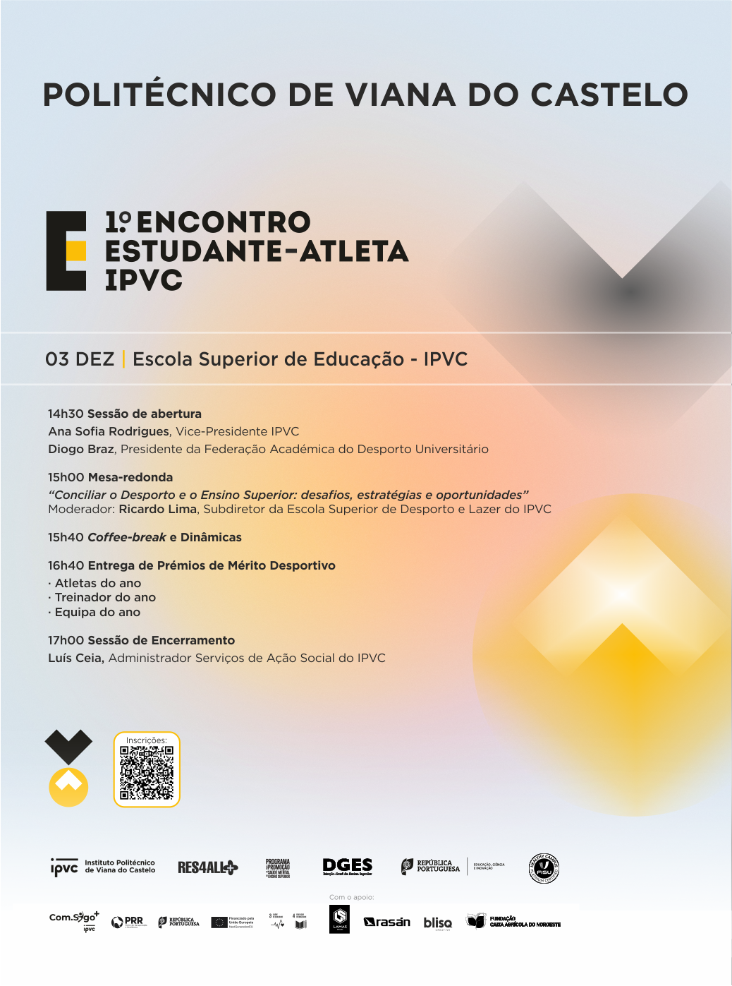 A Escola Superior de Educação do Politécnico de Viana do Castelo será palco do primeiro Encontro Estudante-Atleta, uma iniciativa que junta estudantes, técnicos, dirigentes e parceiros para debater os desafios, as estratégias e as oportunidades da conciliação entre o percurso académico e a prática desportiva. O encontro decorre na próxima quarta-feira, 3 de dezembro, e inclui a entrega dos Prémios de Mérito Desportivo, uma mesa-redonda e momentos de convívio.