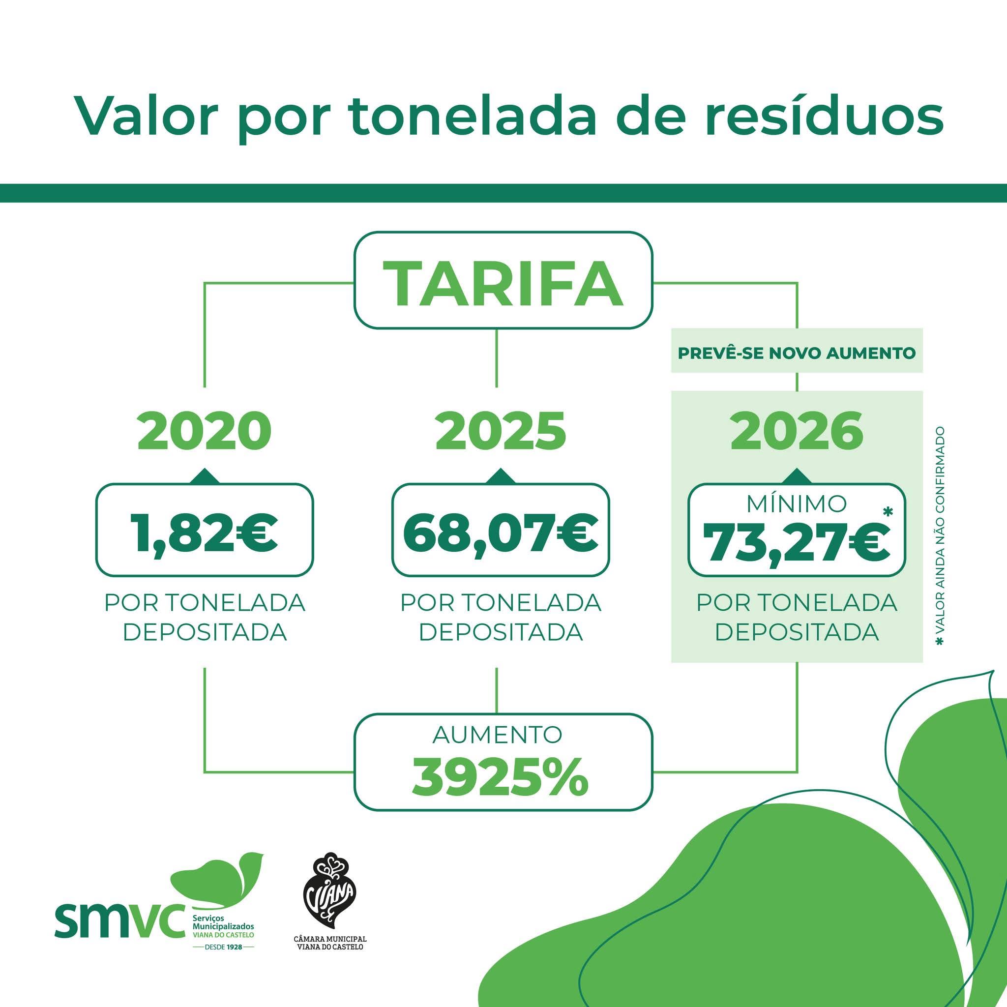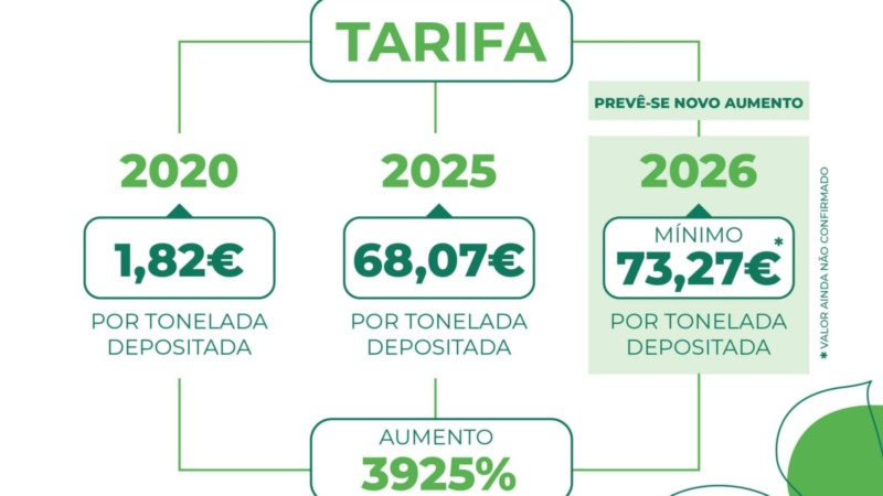 As previsões para 2026 apontam para um novo agravamento. Embora o valor final ainda não tenha sido oficialmente confirmado, estima-se que a tarifa não seja inferior a 73,27 euros por tonelada, o que irá pressionar ainda mais as contas municipais.