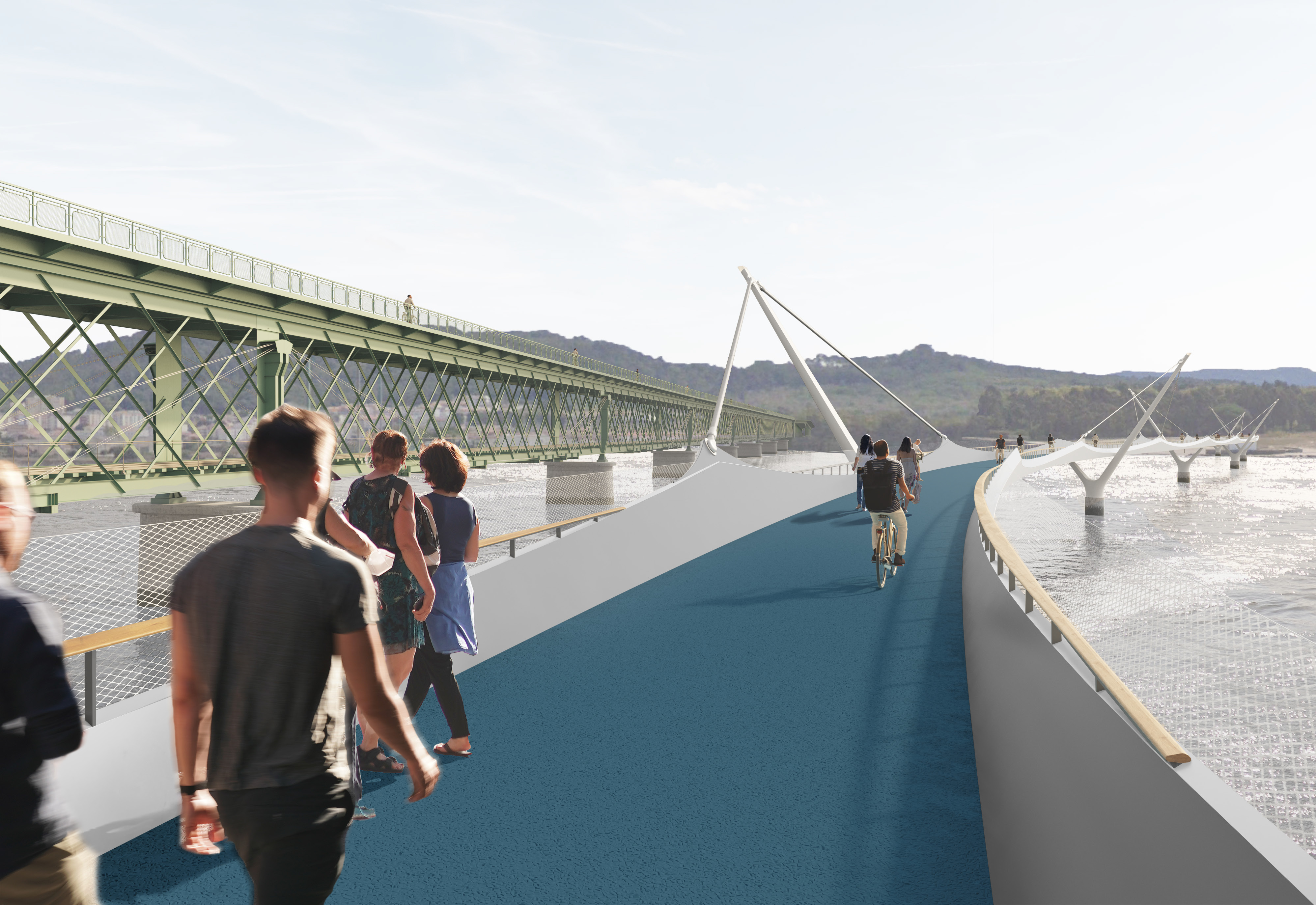 A futura ponte pedonal e ciclável sobre o rio Lima, que será construída a