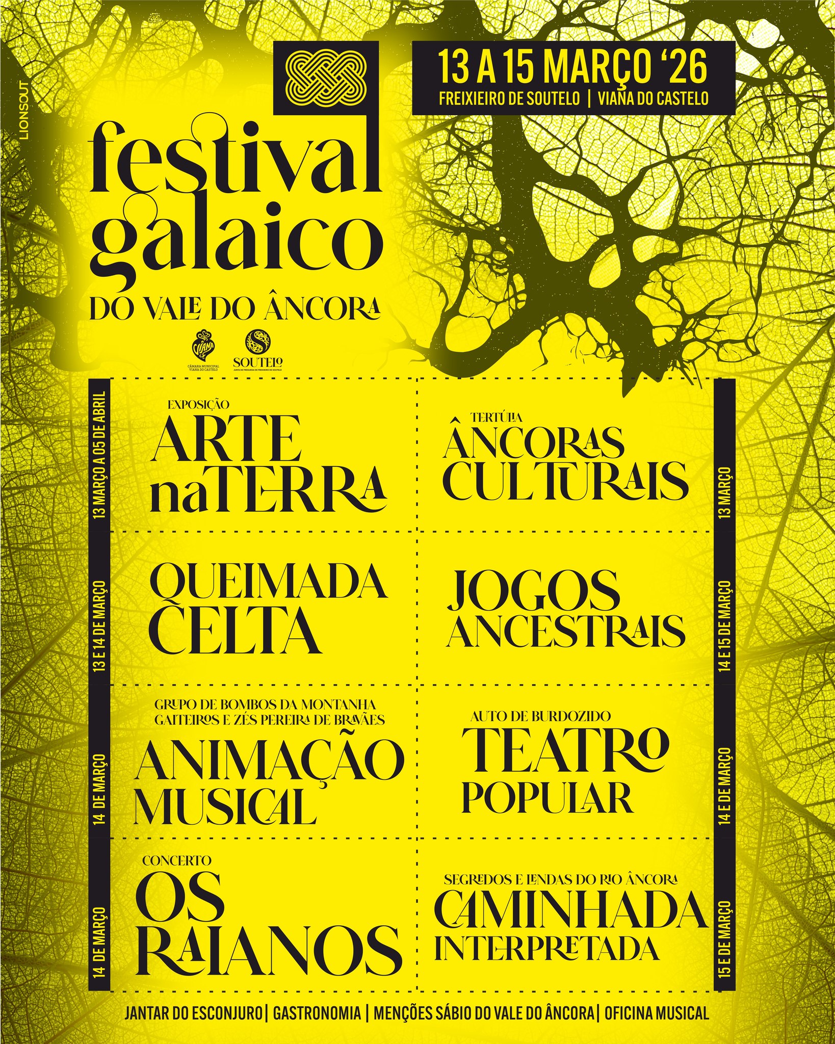 Arte, património e natureza unidos num festival que celebra a alma do Vale do Âncora, trazendo a este território, de 13 a 15 de março, artistas, investigadores, empreendedores, músicos e visitantes, recebidos por uma comunidade com “chieira”na sua história!