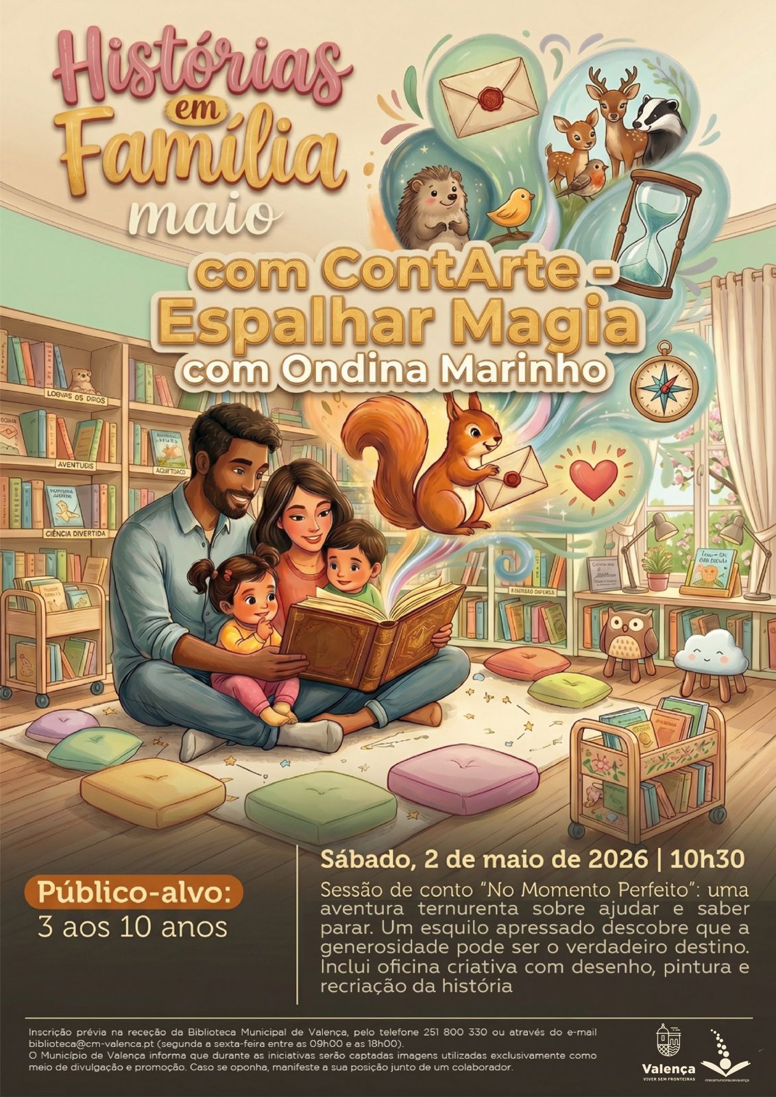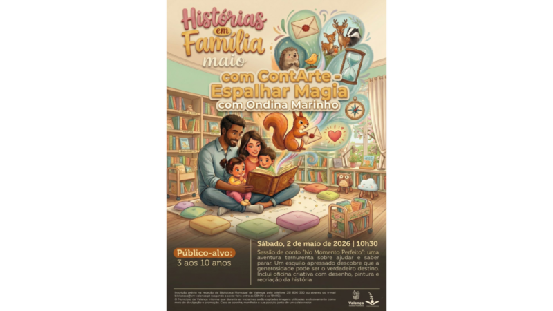A Biblioteca Municipal de Valença promove, no próximo sábado, 2 de maio, às 10h30, mais uma sessão de “Histórias em Família”, dirigida a crianças dos 3 aos 10 anos e às suas famílias.
