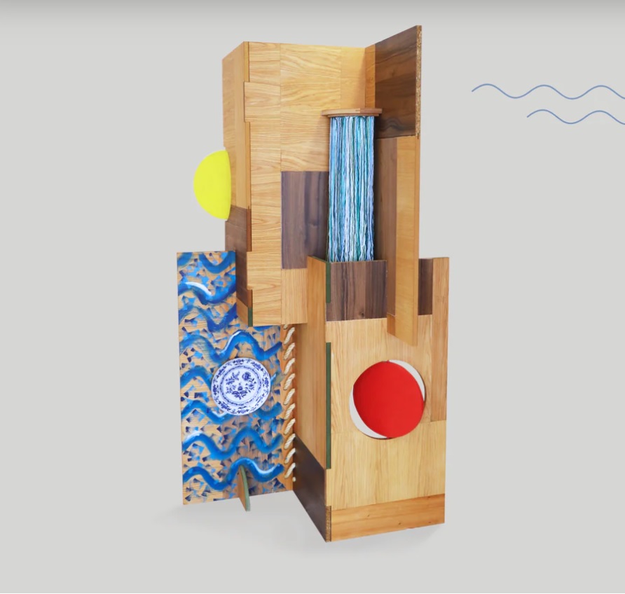 Carlos Mello participou com “uma peça que cruza a cultura portuguesa e japonesa, inspirada no oceano como elo comum. Um biombo construído com madeiras de desperdício, lã residual e cerâmica evocativa, combinando formas, técnicas e símbolos dos dois países. A obra valoriza o upcycling e os materiais com história, propondo um design que respeita o passado e aponta ao futuro.” A peça dá relevo, por exemplo, à cerâmica portuguesa, ao sol nascente, símbolo da bandeira japonesa, à esfera armilar, os nós náuticos ou a lã.