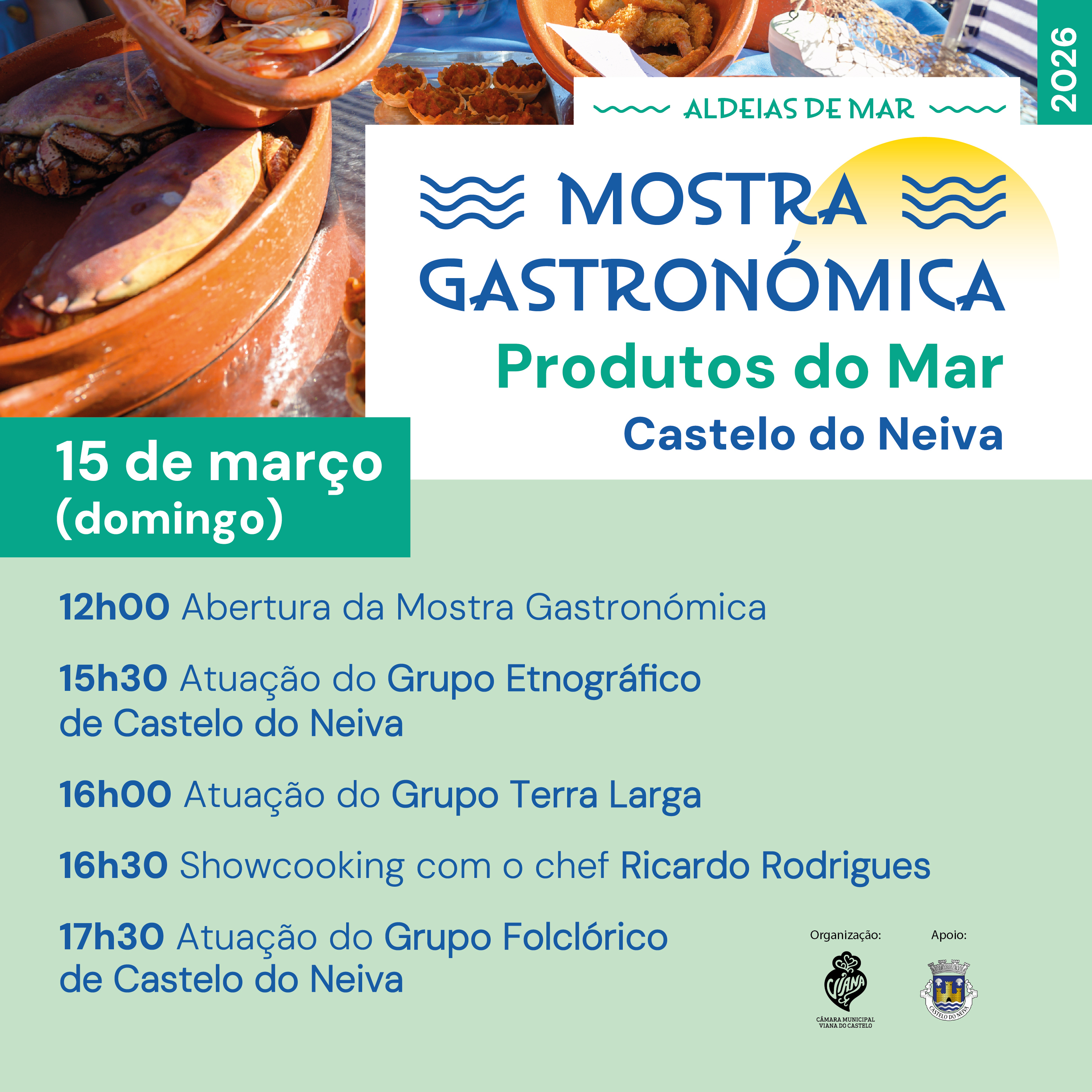 Este fim-de-semana, dias 14 e 15 de março, a Rua dos Pescadores, em Castelo do Neiva, é palco da Mostra Gastronómica – Produtos do Mar, no âmbito das Aldeias de Mar.