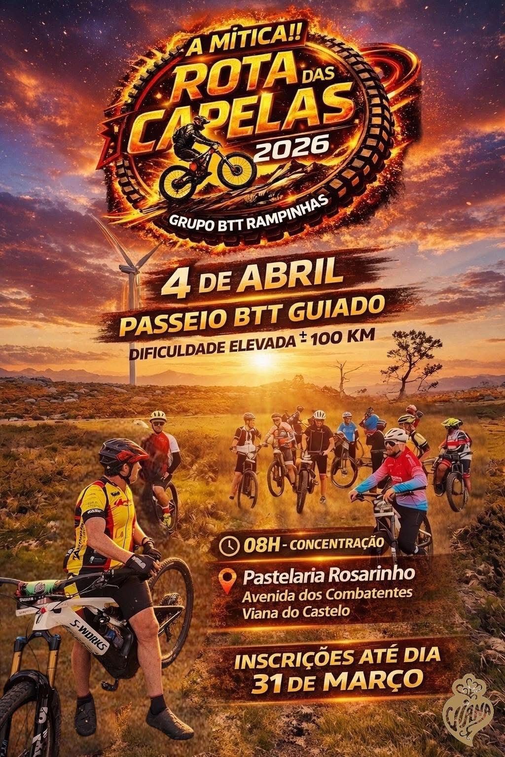 O Grupo BTT Rampinhas organiza no próximo dia 4 de abril mais uma edição da Rota das Capelas, considerada o passeio mais emblemático do grupo, que promete voltar a reunir dezenas de amantes da modalidade em Viana do Castelo.
