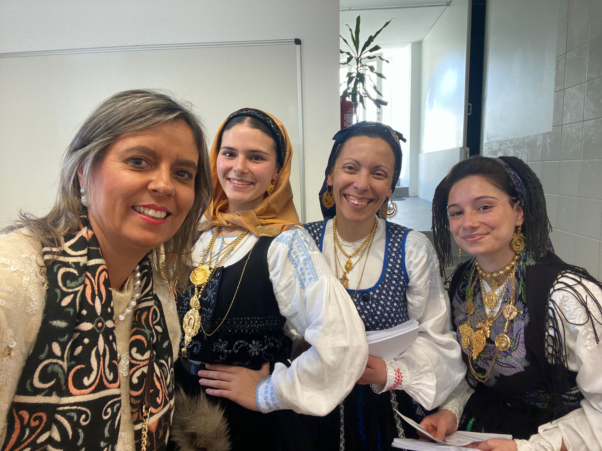 os alunos tiveram a oportunidade de ver uma mordoma trajada, com o palmito