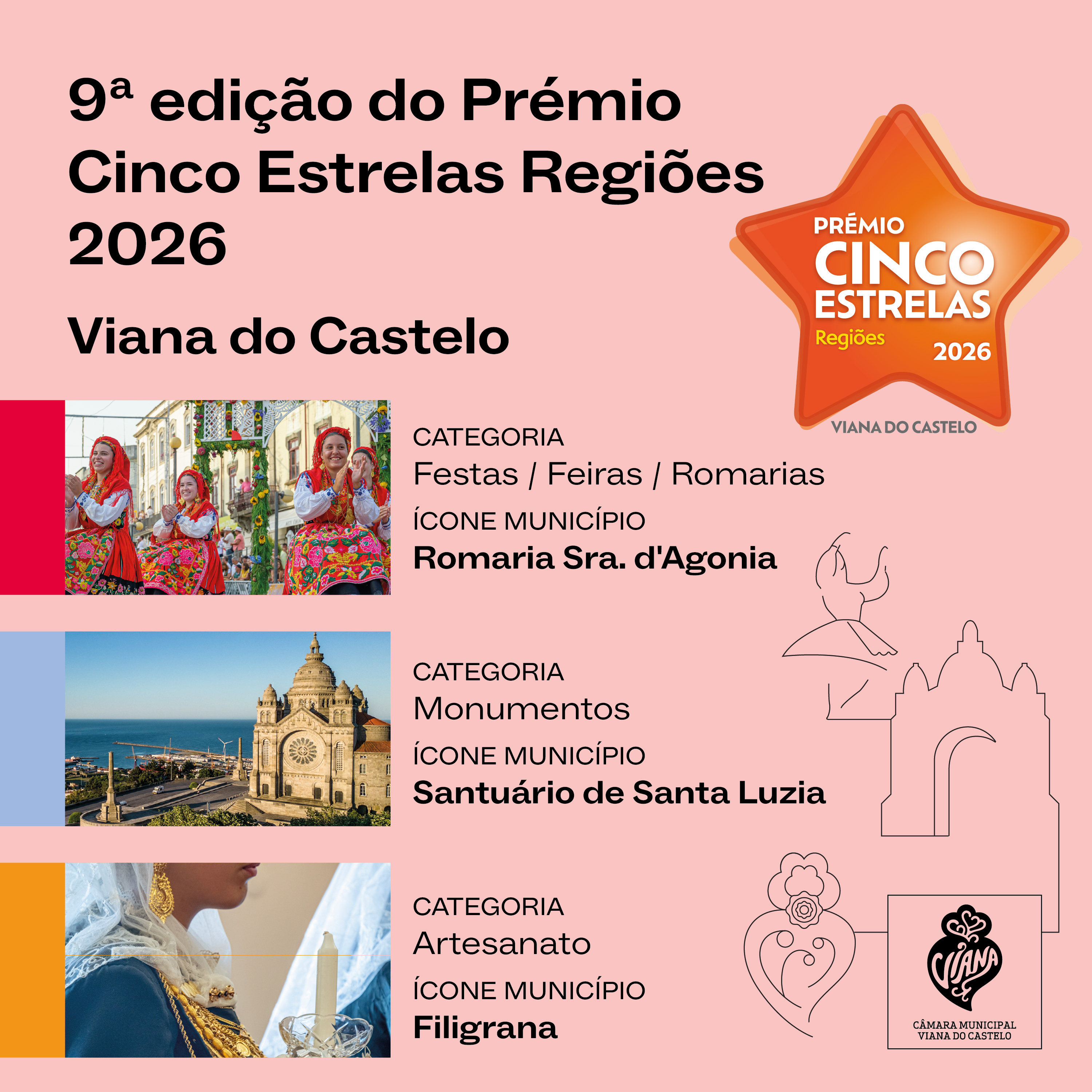 Romaria d’Agonia, Santuário de Santa Luzia e Filigrana vencem Prémio Cinco Estrelas Regiões 2026